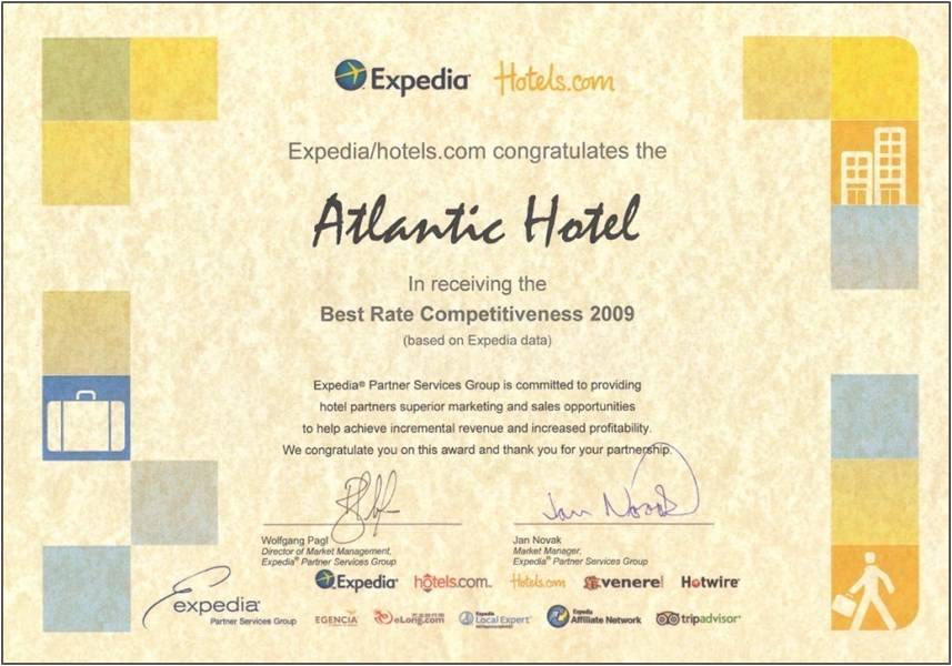 - Atlantic Hotel has been rewarded twice by one of the most important OTAs - Expedia.com